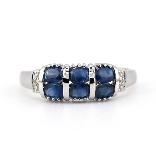 Ring 925/Silber rhodiniert mit Safir und Diamant