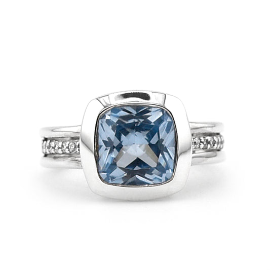 Ring 925/ Silber rhodiniert mit blauem Topas & Zirkonia